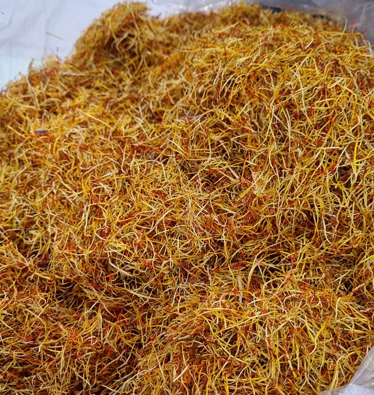 ریشه زعفران در طعم و عطری که ایجاد میکند، تفاوت ناچیزی با زعفران سارگل و نگین دارد. تفاوت اصلی ریشه با کلاله گیاه زعفران در میزان رنگی است که این گیاه تولید میکند. در ظاهر نیز این بخش به صورت رشتههایی با رنگ زرد و سفید عرضه میشود.
